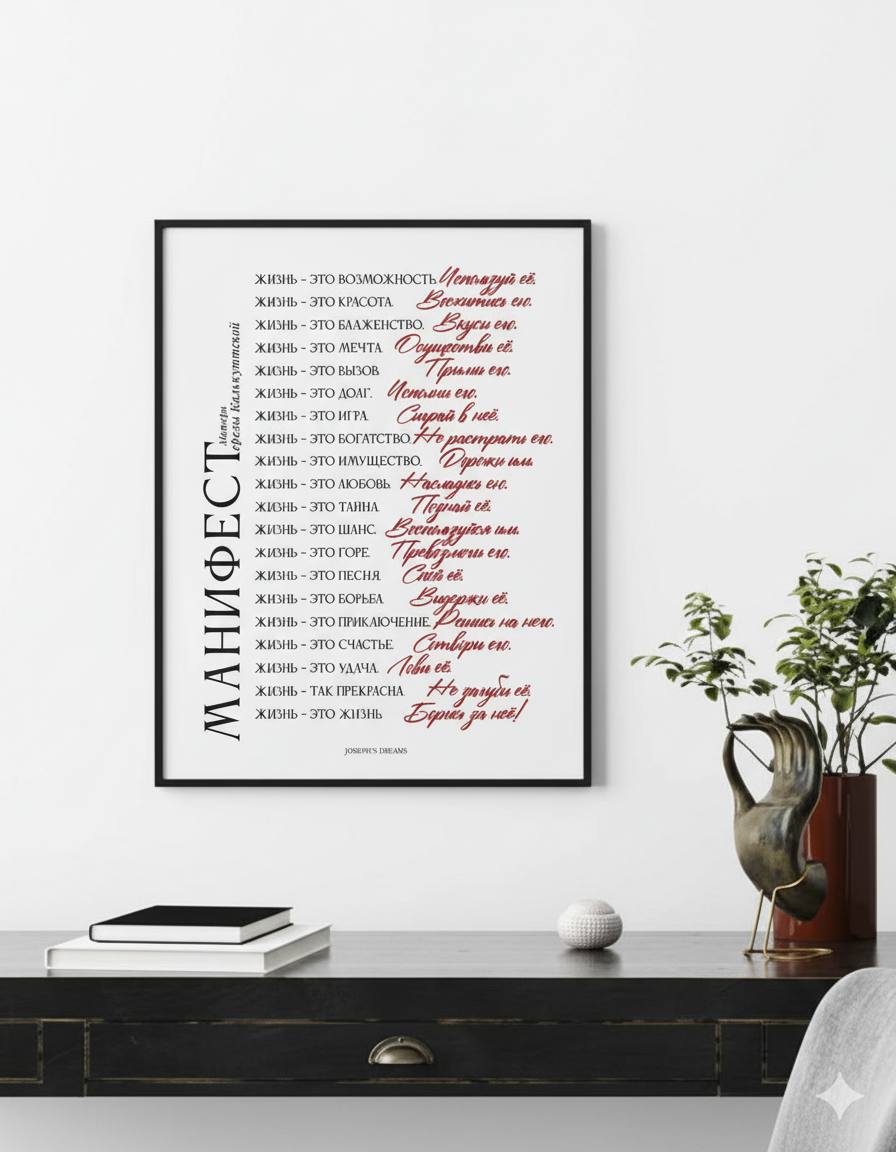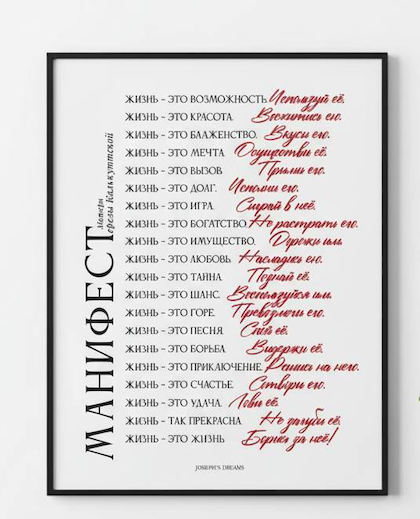 Постер доступен в двух шрифтах, и черной или золотой рамке. Уточняйте при бронировании. Посмотреть детали и заказать можно тут в Духовный Бутик
