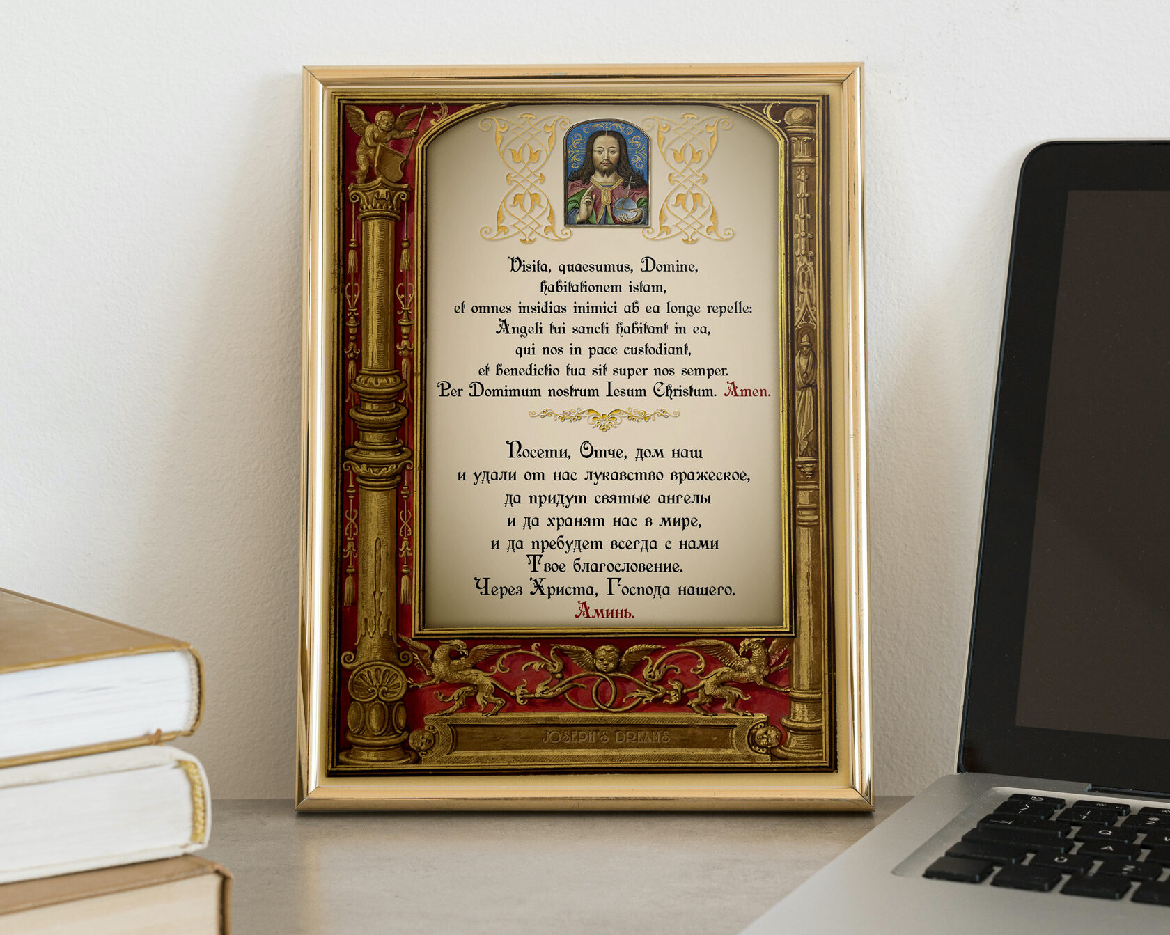 Ожидается долгожднное возобновление продаж молитвенного постера Благословения дома. Постер на двух языках русском и латыни, с канонической молитвой «Посети, Отче, дома наш», выбранной священником. Эта молитва помогает призвать Божью защиту и мир в ваш дом. Дизайн выполнен в стиле позднего Средневековья и Ренессанса, вдохновлённый сакральным искусством. Плакат напечатан на плотной дизайнерской бумаге, формат А4. Так же по вашему желанию, вы можете заказать иной размер и формат произведения. Пусть эта молитва станет частью вашей повседневной духовной жизни.