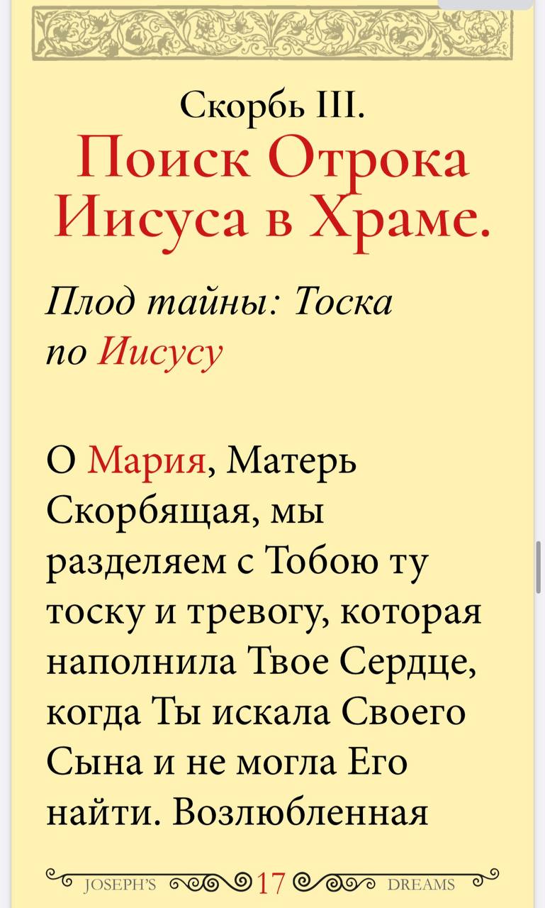 Древняя молитвенная практика, одобренная церковью, принесла облегчение страданий множеству верующих по всему миру. Попробуйте и вы обратиться за помощью к Богородице и получить заступничество Матери Божьей. Цифровое издание содержит текст и изображения для более глубокого молитвенного обращения к Пресвятой Деве в своих молитвенных интенциях.